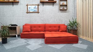 $350.00Orange Floor Couch Corner, Custom Size and Color Cushions; Complementing your decoration, this elegant corner sofa will bring warmth and style to your living space such as living room, children’s room, balcony, terrace, garden and office.