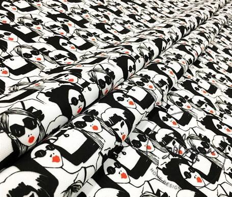 Black and white women patterned sofa and curtain fabric digital printing drapery and sofa fabric. Width: 143 cm, washable, wipeable, stain-resistant, shrink-proof and colorfast. It is microfiber fabric. Since it is a woven fabric, it is air permeable. The paint used is certified. Product code: SZ-0535