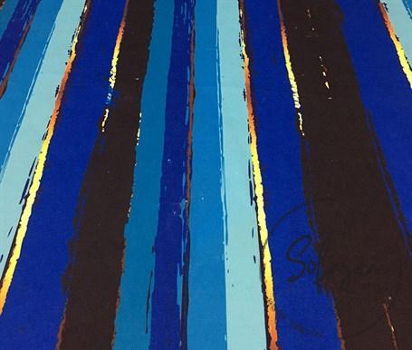 Black blue antique striped fabric digital printing drapery and sofa fabric. Width: 143 cm, washable, wipeable, stain-resistant, shrink-proof and colorfast. It is microfiber fabric. Since it is a woven fabric, it is air permeable. The paint used is certified.