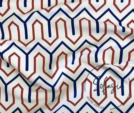 Geometric line pattern fabric digital printing drapery and sofa fabric. Width: 143 cm, washable, wipeable, stain-resistant, shrink-proof and colorfast. It is microfiber fabric. Since it is a woven fabric, it is air permeable. The paint used is certified.