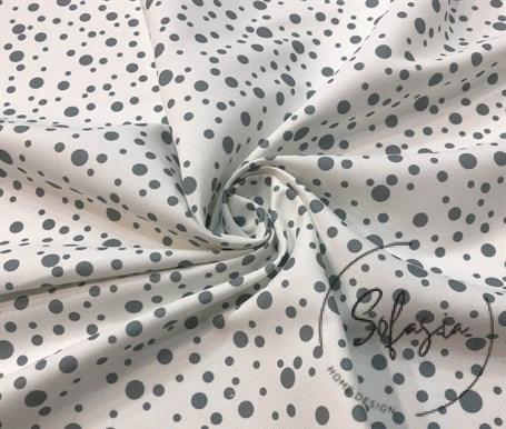 Gray droplet pattern digital printed fabric digital printing drapery and sofa fabric. Width: 143 cm, washable, wipeable, stain-resistant, shrink-proof and colorfast. It is microfiber fabric. Since it is a woven fabric, it is air permeable. The paint used is certified. Product code: SZ-1325