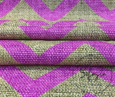 Linen effect pink zigzag pattern fabric digital printing drapery and sofa fabric. Width: 143 cm, washable, wipeable, stain-resistant, shrink-proof and colorfast. It is microfiber fabric. Since it is a woven fabric, it is air permeable. The paint used is certified. Product code: SZ-0187