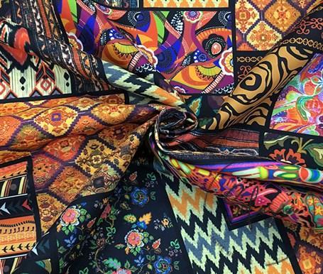 Patchwork patterned fabric digital printing drapery and sofa fabric. Width: 143 cm, washable, wipeable, stain-resistant, shrink-proof and colorfast. It is microfiber fabric. Since it is a woven fabric, it is air permeable. The paint used is certified.