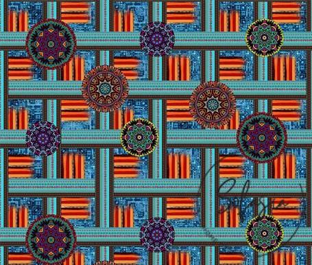 Turquoise navy blue mandala patterned cushion fabric digital printing drapery and sofa fabric. Width: 143 cm, washable, wipeable, stain-resistant, shrink-proof and colorfast. It is microfiber fabric. Since it is a woven fabric, it is air permeable. The paint used is certified.